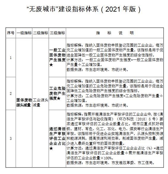 為指導(dǎo)城市做好“無(wú)廢城市”建設(shè)工作,推動(dòng)城市大幅度減少固體廢物產(chǎn)生量,促進(jìn)固體廢物綜合利用,降低固體廢物危害性,最大限度降低固體廢物填埋量,穩(wěn)步提升固體廢物治理體系和治理能力,制定《“無(wú)廢城市”建設(shè)指標(biāo)體系(2021 年版)》[以下簡(jiǎn)稱《指標(biāo)體系(2021 年版)》]。